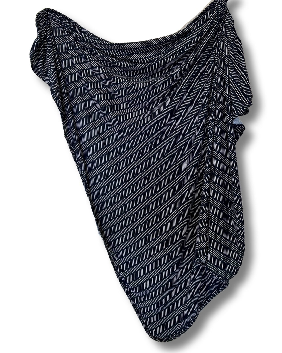 Our buttery soft bamboo swaddle is oversized and stretchy so you can create the perfect swaddle for your baby. It is about 4 feet by 4 feet so you have room to create a knot at the bottom for newborn pictures if wanted.