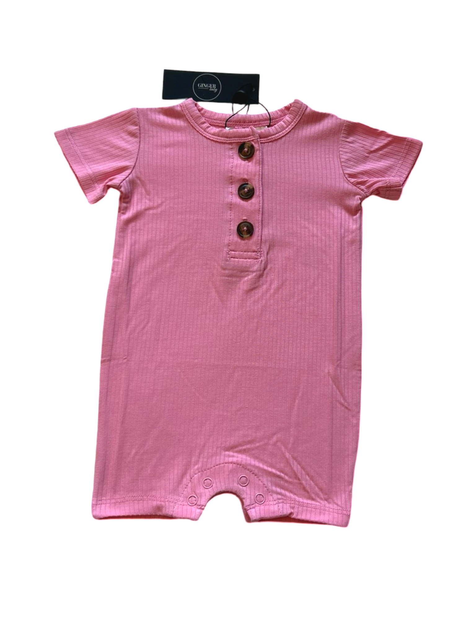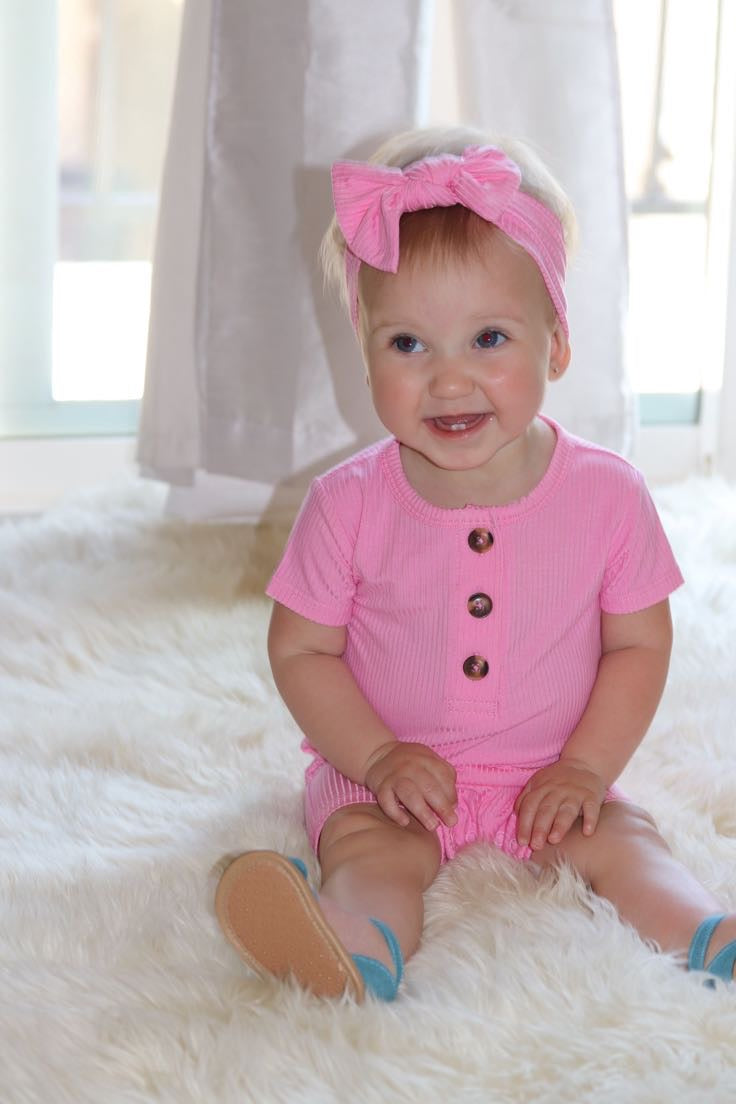 Bubblegum Pink Ribbed Short Romper
