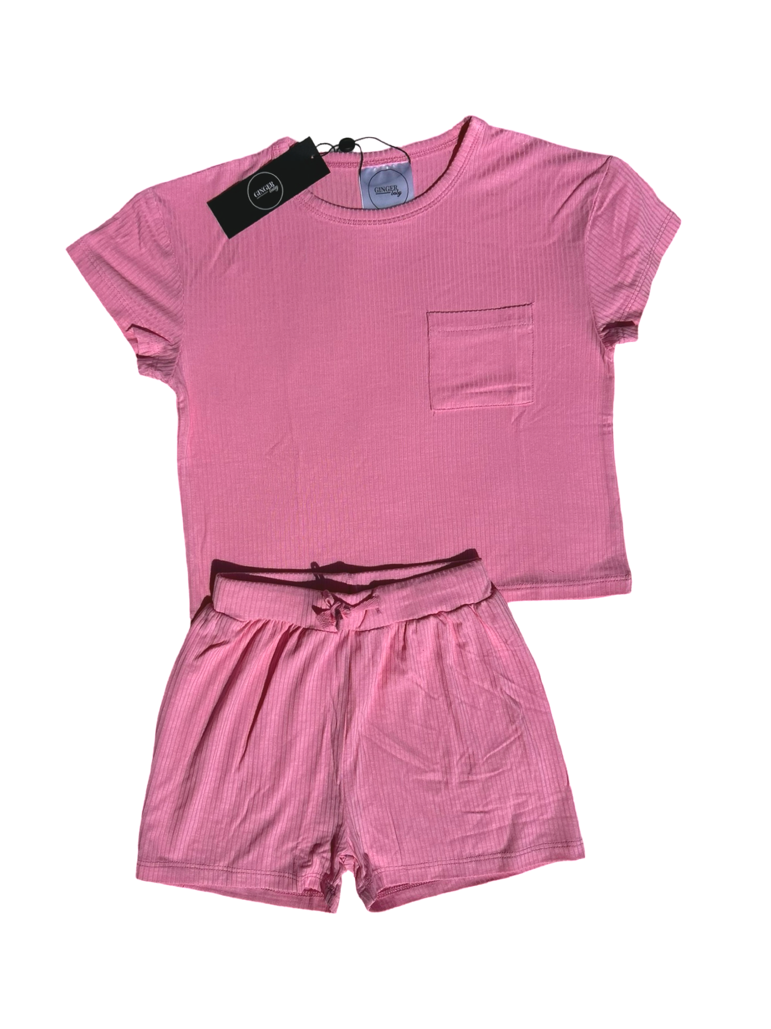 Bubblegum Pink Ribbed Toddler Lounge Short Set