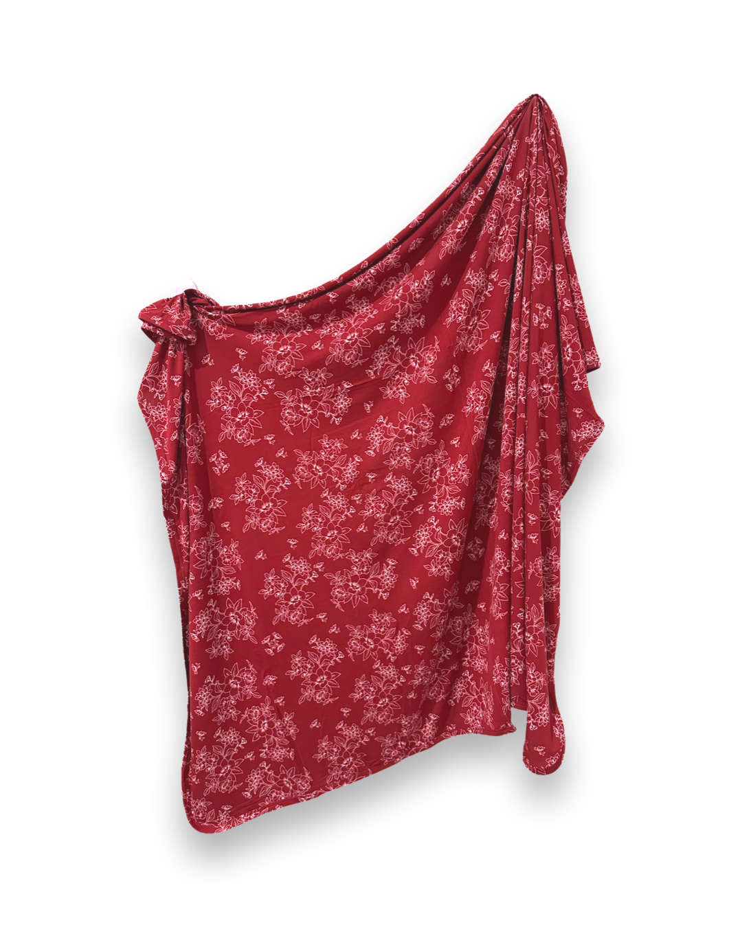 Our buttery soft bamboo swaddle is oversized and stretchy so you can create the perfect swaddle for your baby. It is about 4 feet by 4 feet so you have room to create a knot at the bottom for newborn pictures if wanted.